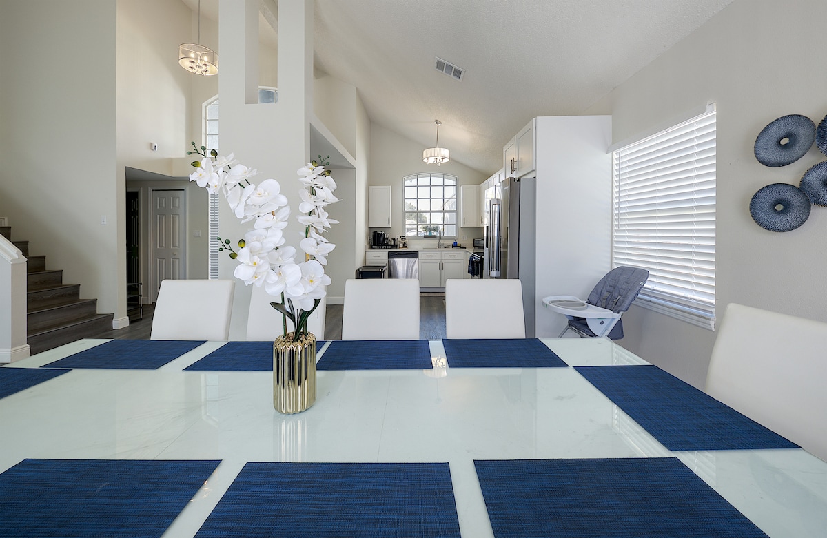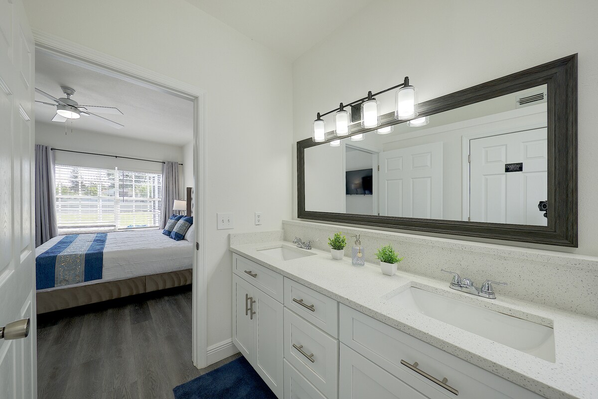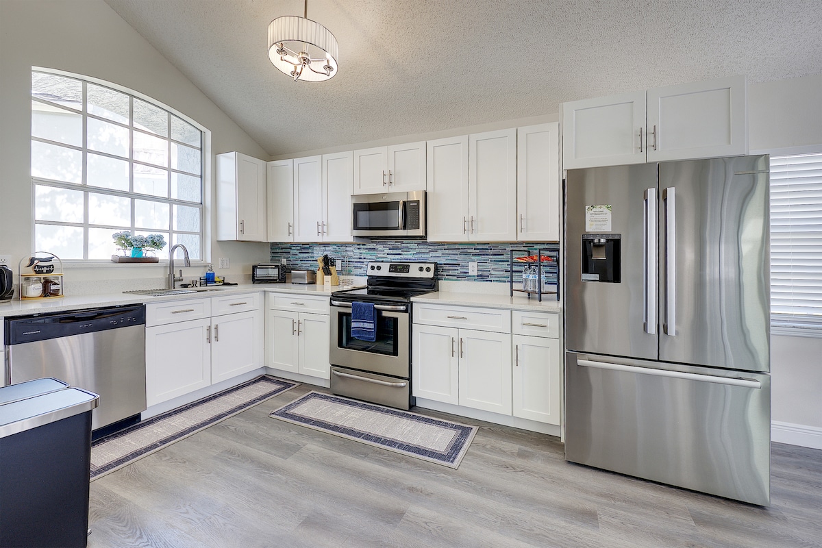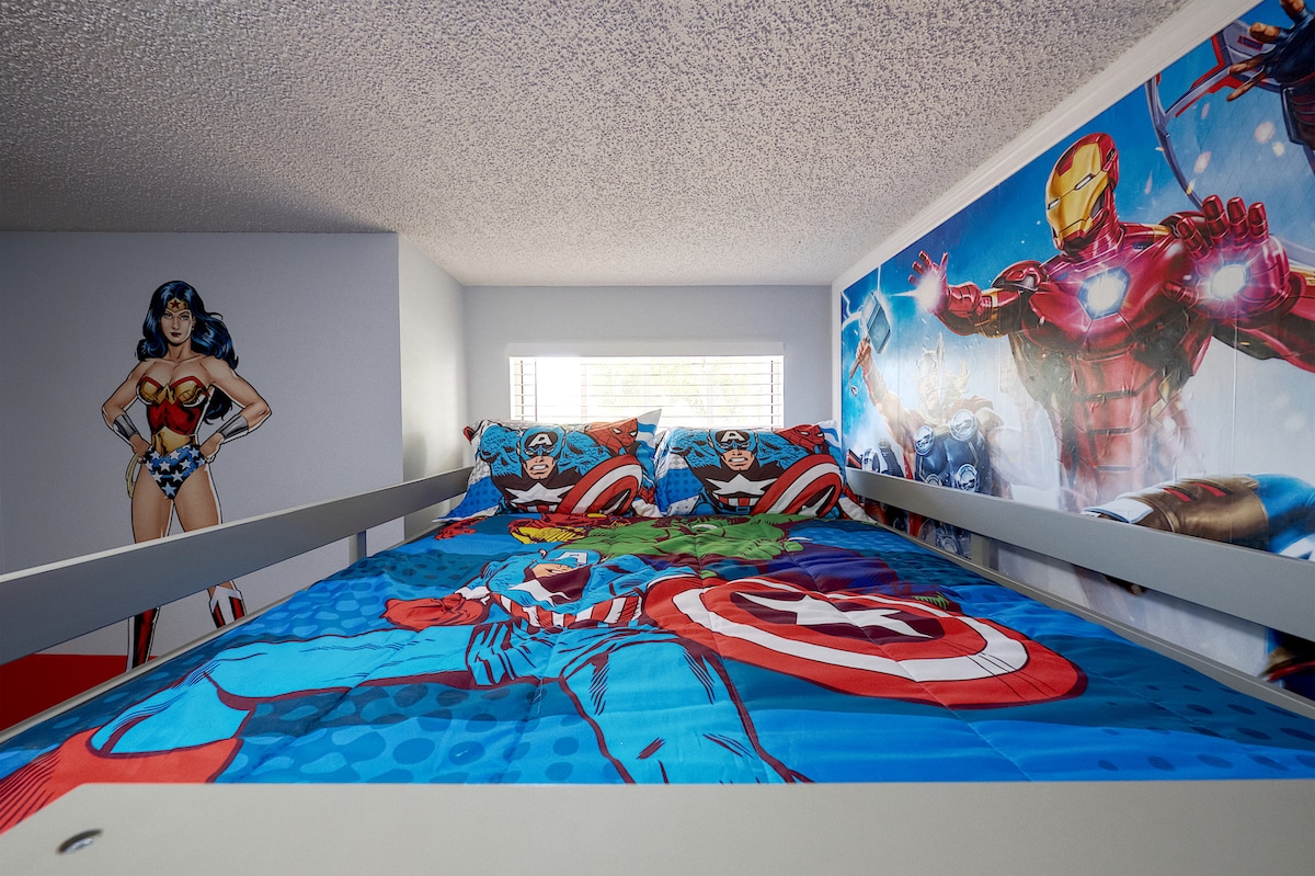 Experience the ultimate family-friendly vacation at our fully renovated spacious home, conveniently located just 13 minutes from Disney World. Boasting four themed bedrooms, themed game-room, 2.5 bathrooms, private heated pool, office space and fully stocked kitchen. This retreat is perfect for both large families and business travelers alike.