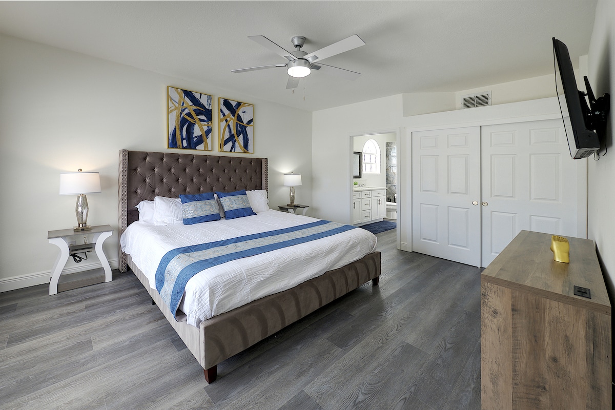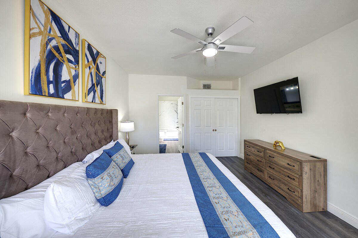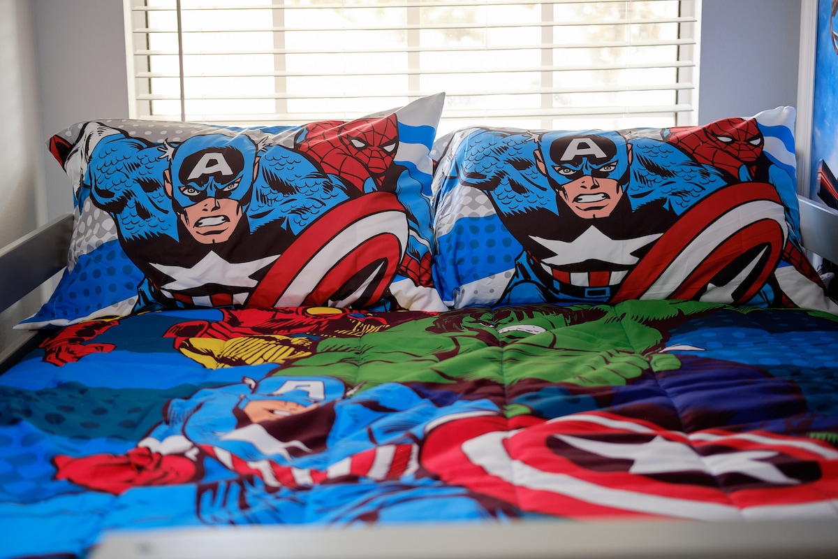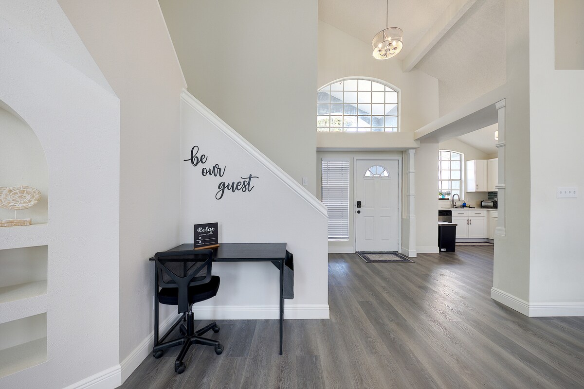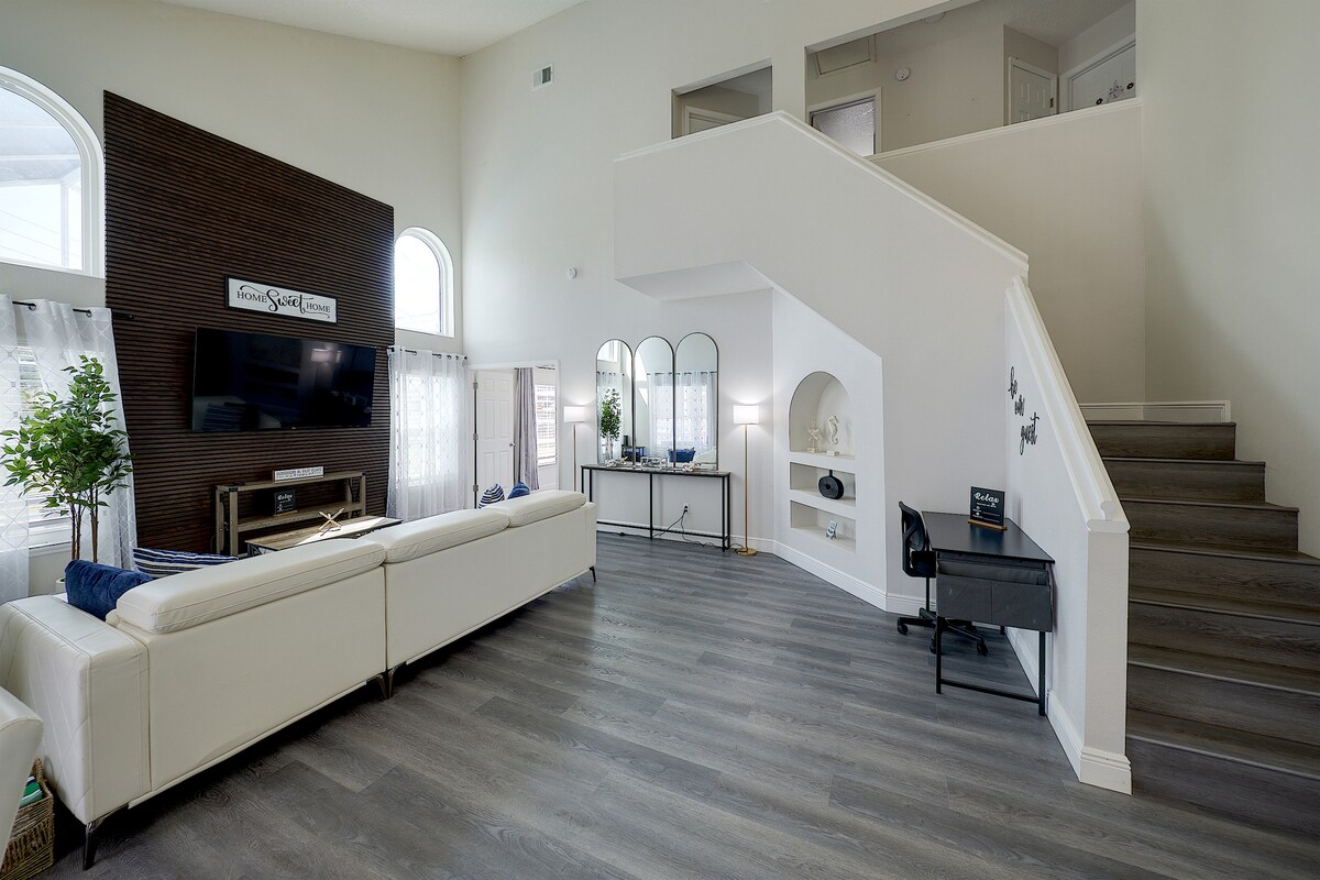 Experience the ultimate family-friendly vacation at our fully renovated spacious home, conveniently located just 13 minutes from Disney World. Boasting four themed bedrooms, themed game-room, 2.5 bathrooms, private heated pool, office space and fully stocked kitchen. This retreat is perfect for both large families and business travelers alike.